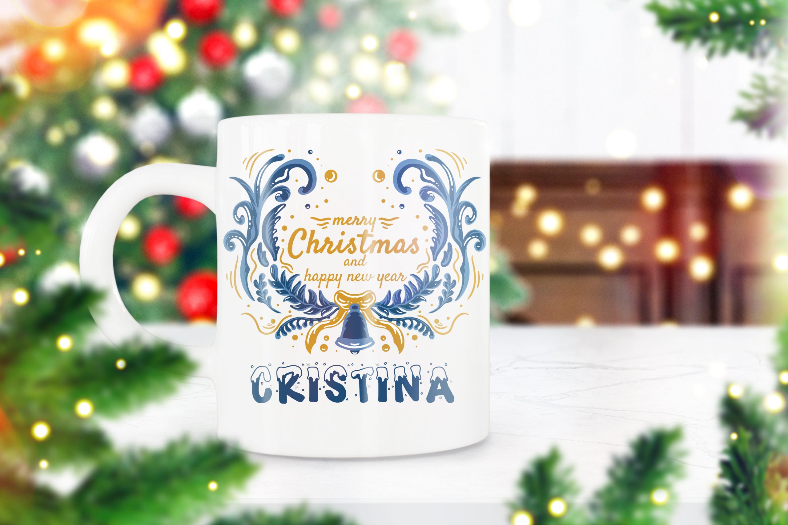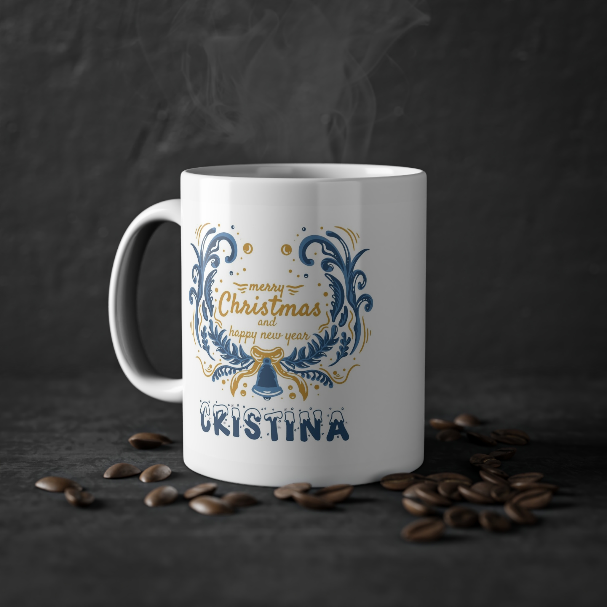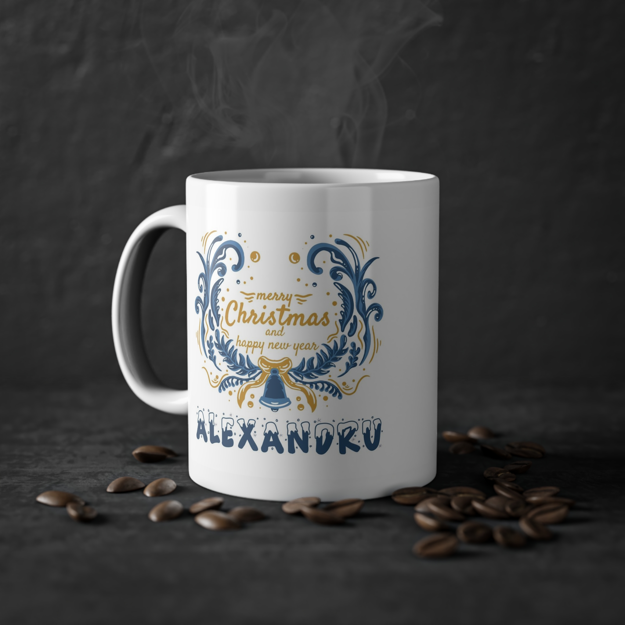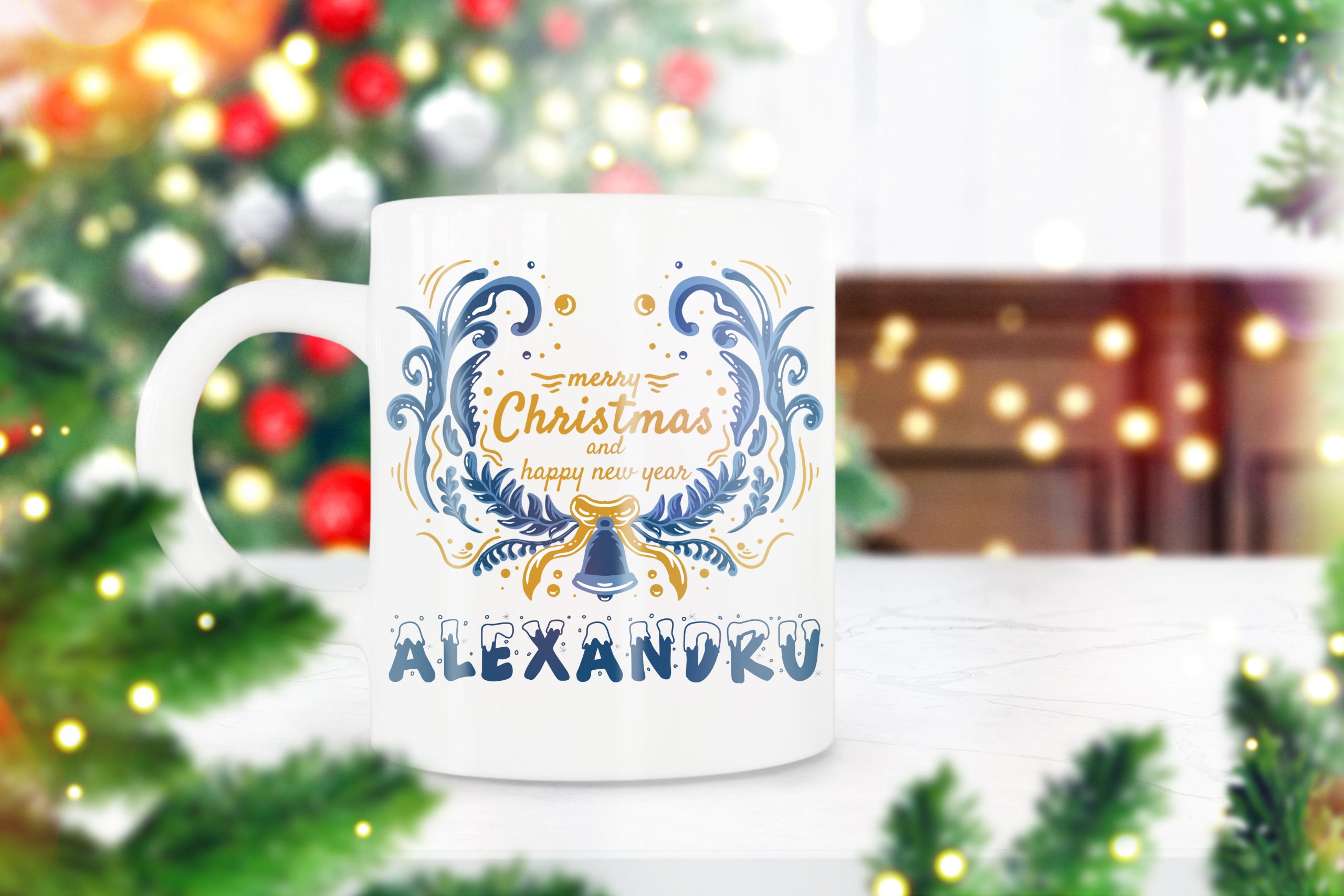 Cana de Craciun Personalizata cu Text „Merry christmas and happy new year”