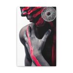 Panza printata in culori vibrante, montata pe sasiu din lemn, imbinat manual.